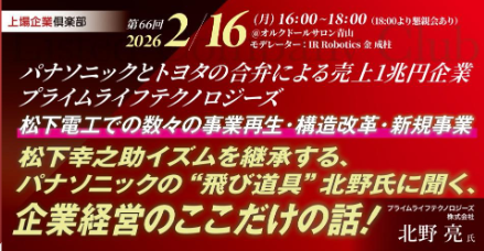 パナソニックとトヨタの合弁による売上1兆円企業 プライムライフテクノロジーズ 松下電工での数々の事業再生・構造改革・新規事業 松下幸之助イズムを継承する、 パナソニックの“飛び道具”北野氏に聞く、 企業経営のここだけの話!
